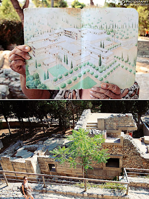В начале 20-го века британский исследователь Сэр Артур Эванс (Sir Arthur Evans) откопал Кносский дворец, и найденные им детали быта поведали историю расцвета минойской культуры. Многие археологи критикуют Эванса за его "креативную интерпретацию" древних архитектурных ансамблей, которые он добавил в избранных местах на раскопках. Он это сделал, чтобы дать представление о том, как, возможно, выглядел дворцовый комплекс в те времена. Однако, остается загадкой, насколько то, что мы видим сегодня, было похоже на тогдашнюю реальность. Тем не менее, при помощи такой визуализации, мы хоть немножко можем представить себе, как тогда выглядели основные элементы постройки того времени.